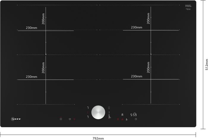 Благодаря функции QuickStart место на поверхности, где установлена посуда, определяется автоматически. Пользователю не нужно выбирать конфорку нажатием соответствующей кнопки: чтобы начать приготовление, ему достаточно только поставить кастрюлю или сковороду на поверхность и выбрать температуру — варочная панель при этом начнет нагревать соответствующую конфорку самостоятельно. При этом требуется использовать посуду исключительно из намагничивающихся материалов — таких, как нержавеющая или эмалированная сталь.