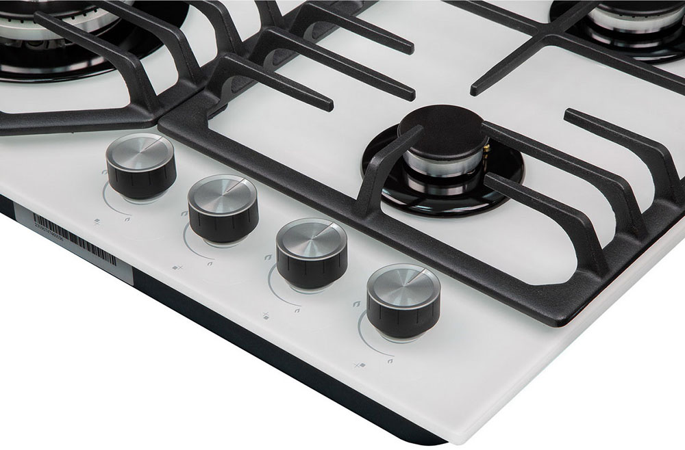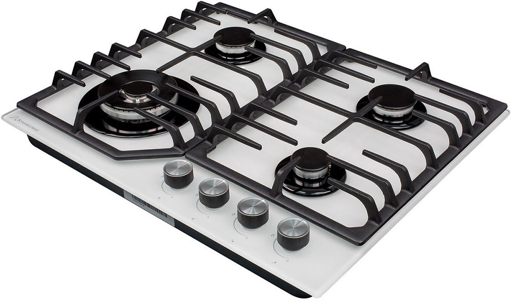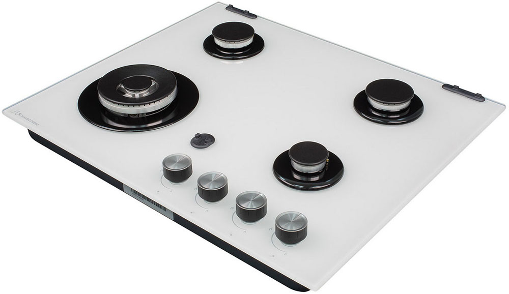 Выбор газовой варочной панели чаще всего обусловлен тем, что в частный дом или квартиру проведен именно газ в качестве обогрева. Работать с этой моделью довольно просто, так как мощность нагрева видна невооруженным взглядом — по силе огня в горелке. Количество конфорок в этой модели: 4.