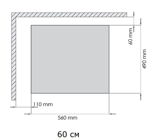 - Ширина встраивания: меньше на 12 см