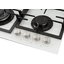 Цвет — белый. Благодаря отсутствию рамки она отлично впишется в интерьер и не займет лишнее место на столешнице, которое можно использовать для работы. Открытый огонь не страшен ни вашей посуде, ни вам, так как горелки надежно закрыты решетками. Материал самой поверхности: закаленное стекло. Управление этой моделью механическое. Для переключения уровней нагрева, выбора функций используются следующие переключатели: поворотные. Простая система контроля за прибором делают его более универсальным, ведь разобраться сможет кто угодно.