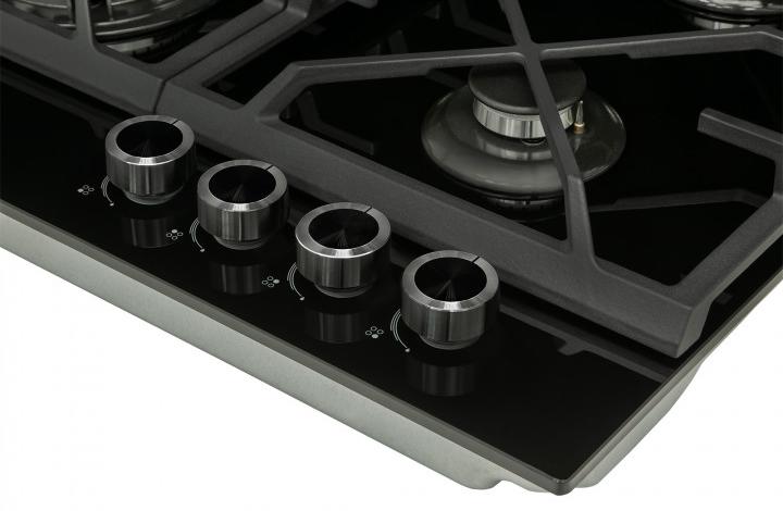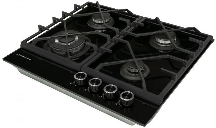 Выбор газовой варочной панели чаще всего обусловлен тем, что в частный дом или квартиру проведен именно газ в качестве обогрева. Работать с этой моделью довольно просто, так как мощность нагрева видна невооруженным взглядом — по силе огня в горелке. Количество конфорок в этой модели: 4.