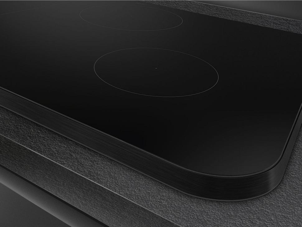 Хорошей альтернативой рамке является металлический профиль, который обычно устанавливается только спереди или сбоку. Он также не позволяет жидкости стекать на столешницу, но не «съедает» полезную площадь. Что касается варочных панелей без рамки, неизменной популярностью пользуются модели со скошенным краем. Такая обработка называется фацетной — внешняя сторона панели имеет огранку под углом 45 градусов. Такая панель очень легко чистится и эффектно выглядит, а современные методы огранки защищают края от сколов.