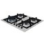 Выбор газовой варочной панели чаще всего обусловлен тем, что в частный дом или квартиру проведен именно газ в качестве обогрева. Работать с этой моделью довольно просто, так как мощность нагрева видна невооруженным взглядом — по силе огня в горелке. Количество конфорок в этой модели: 4. Горелки с двойной короной позволяют увеличивать мощность нагрева в зависимости от диаметра посуды.
