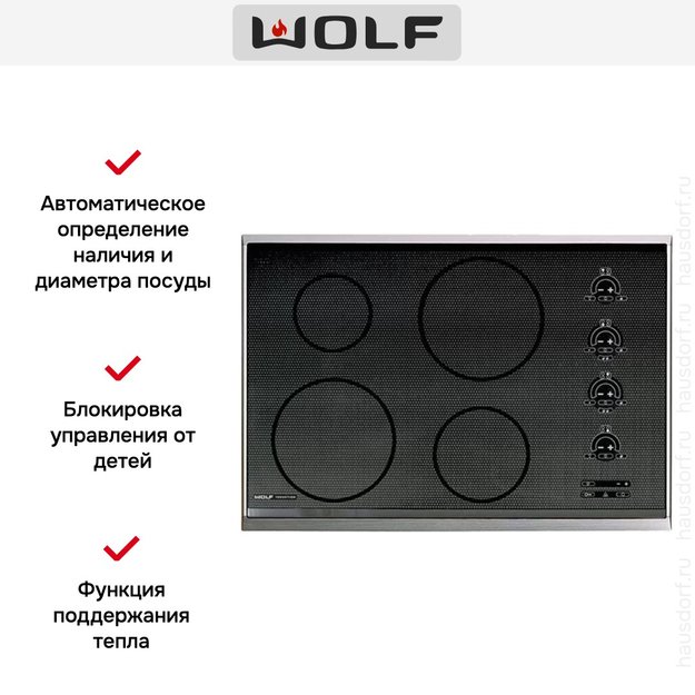 Модель Вольф ICBCT30I/S входит в дизайн-линейку: Piano. Цвет — черный. Благодаря рамке она отделена от рабочей зоны и прочнее закреплена на столешнице. Материал самой поверхности: ударопрочная керамика с износостойкой графикой. Управление этой моделью электронное. Для переключения уровней нагрева, выбора функций используются следующие переключатели: сенсорные/TouchControl. Продвинутая система контроля за прибором делают его современным и отвечающим на главные запросы покупателя.