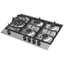 Выбор газовой варочной панели чаще всего обусловлен тем, что в частный дом или квартиру проведен именно газ в качестве обогрева. Работать с этой моделью довольно просто, так как мощность нагрева видна невооруженным взглядом — по силе огня в горелке. Количество конфорок в этой модели: 5.