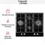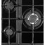 Правая Wok-конфорка высокой мощности оснащена тремя рядами пламени, которое нагревает дно посуды со всех сторон, и позволяет готовить блюда восточной кухни в посуде с круглым дном. Передняя конфорка отличается минимальной мощностью, что способствует безопасной эксплуатации. Матовые колпачки горелок отмываются без всякого труда. Три массивные чугунные решетки позволяют размещать посуду максимально устойчиво, и свободно снимаются. Промыть их можно под струей воды. Две группы поворотных переключателей с бесступенчатой регулировкой мощности пламени расположены на фронтальной части. Рукоятки из нержавеющей стали не нагреваются и отлично сочетаются с черным стеклом поверхности и темным металлом решеток. Электроподжиг позволяет зажигать любую горелку без спичек и зажигалок, одной рукой. Модель может присоединяться к баллонному газу при помощи форсунок, которые входят в комплект. Технология газового контроля исключает риск возникновения взрыво- и пожароопасных ситуаций.
