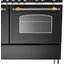 Устройства с тремя духовками также имеют один основной и две дополнительных шкафа разного объема: например, плиты Bertazzoni оснащены большой духовкой объемом 69 литров, средней объемом 54 литра и малой объемом 24 литра. Духовки располагаются в два ряда: две меньшие духовки в одном ряду, большая и ящик для посуды в другом.