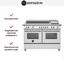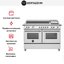 Устройства с тремя духовками также имеют один основной и две дополнительных шкафа разного объема: например, плиты Bertazzoni оснащены большой духовкой объемом 69 литров, средней объемом 54 литра и малой объемом 24 литра. Духовки располагаются в два ряда: две меньшие духовки в одном ряду, большая и ящик для посуды в другом.