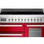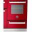 Варочный центр Bertazzoni PRO1005IMFETROT — стильная модель в корпусе красного цвета с индукционной варочной панелью, тремя электрическими духовыми шкафами и ящиком для посуды. Общая электронно-механическая панель управления оснащена цифровым дисплеем и поворотными переключателями для регулировки мощности нагрева. На варочной панели из черного закаленного стекла находятся пять конфорок мощностью до 3 кВт и диаметром до 23 см. Объем основной духовки составляет 69 литров, она имеет 4 уровня приготовления и 11 режимов работы, включая верхний и нижний нагрев, гриль, конвекцию, размораживание, приготовление пиццы, нагрев при помощи кольцевого нагревательного элемента, высушивание. Вторая духовка объемом 54 литра оснащена 6 режимами нагрева, а объем третьей вспомогательной духовки составляет 24 литра.