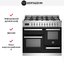 Электрический духовой шкаф разделен на три зоны объемом 69, 54 и 24 литра. Духовка работает в 11 режимах, включая конвекцию и электрический гриль для различных блюд. Стенки камеры покрыты специальной эмалью, на поверхности которой загрязнения и остатки пищи растворяются во время приготовления. Плита выполнена в едином дизайне с линейкой Professional в матовом черном цвете имеет как механические переключатели, так и электронный дисплей.