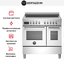 Устройства с тремя духовками также имеют один основной и две дополнительных шкафа разного объема: например, плиты Bertazzoni оснащены большой духовкой объемом 69 литров, средней объемом 54 литра и малой объемом 24 литра. Духовки располагаются в два ряда: две меньшие духовки в одном ряду, большая и ящик для посуды в другом.