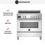Устройства с тремя духовками также имеют один основной и две дополнительных шкафа разного объема: например, плиты Bertazzoni оснащены большой духовкой объемом 69 литров, средней объемом 54 литра и малой объемом 24 литра. Духовки располагаются в два ряда: две меньшие духовки в одном ряду, большая и ящик для посуды в другом.