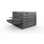 Устройства с тремя духовками также имеют один основной и две дополнительных шкафа разного объема: например, плиты Bertazzoni оснащены большой духовкой объемом 69 литров, средней объемом 54 литра и малой объемом 24 литра. Духовки располагаются в два ряда: две меньшие духовки в одном ряду, большая и ящик для посуды в другом.