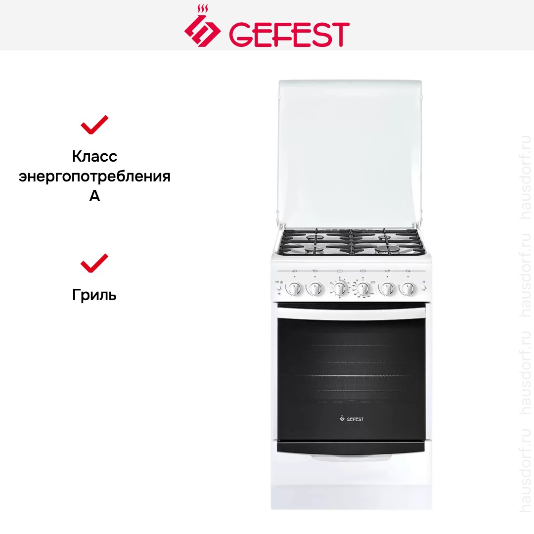 Комбинированная плита Gefest 5101-02 — отличный выбор как для квартиры, так и для частного дома. Цвет корпуса белый, он гармонично сочетается с мебелью и техникой похожих оттенков, а также может интересно выглядеть на контрасте с ними. Для управления используется удобная и понятная механическая система. Благодаря ей выбирать режимы приготовления и настраивать параметры температуры очень просто. Переключатели не только выполняют техническую функцию, но и поддерживают общий дизайн; тип элементов: поворотные.