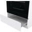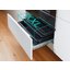 Внутренняя поверхность имеет специальное защитное покрытие: пиролитическая эмаль SilverMatte хорошо аккумулирует и держит тепло, не нуждается в специфическом уходе. Следуйте инструкции для удаления загрязнений — и прибор прослужит вам много лет без повреждений. Продуманная система направляющих для противней предупреждает падение тяжелой посуды при ее загрузке и извлечении: в этой модели используются рельефные элементы. Приятный бонус — специальное отделение для хранения посуды и аксессуаров.