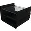 Устройства с тремя духовками также имеют один основной и две дополнительных шкафа разного объема: например, плиты Bertazzoni оснащены большой духовкой объемом 69 литров, средней объемом 54 литра и малой объемом 24 литра. Духовки располагаются в два ряда: две меньшие духовки в одном ряду, большая и ящик для посуды в другом.