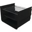 Устройства с тремя духовками также имеют один основной и две дополнительных шкафа разного объема: например, плиты Bertazzoni оснащены большой духовкой объемом 69 литров, средней объемом 54 литра и малой объемом 24 литра. Духовки располагаются в два ряда: две меньшие духовки в одном ряду, большая и ящик для посуды в другом.