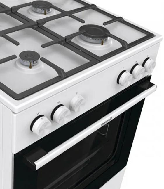 Газовая плита Gorenje GG6A11WF — отличный выбор как для квартиры, так и для частного дома. Цвет корпуса белый, он гармонично сочетается с мебелью и техникой похожих оттенков, а также может интересно выглядеть на контрасте с ними. Для управления используется удобная и понятная механическая система. Благодаря ей выбирать режимы приготовления и настраивать параметры температуры очень просто. Переключатели не только выполняют техническую функцию, но и поддерживают общий дизайн; тип элементов: поворотные.