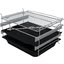 Внутренняя поверхность имеет специальное защитное покрытие: эмаль хорошо аккумулирует и держит тепло, не нуждается в специфическом уходе. Следуйте инструкции для удаления загрязнений — и прибор прослужит вам много лет без повреждений. Продуманная система направляющих для противней предупреждает падение тяжелой посуды при ее загрузке и извлечении: в этой модели используются хромированные телескопические элементы. Приятный бонус — специальное отделение для хранения посуды и аксессуаров.