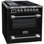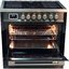 Устройства с тремя духовками также имеют один основной и две дополнительных шкафа разного объема: например, плиты Bertazzoni оснащены большой духовкой объемом 69 литров, средней объемом 54 литра и малой объемом 24 литра. Духовки располагаются в два ряда: две меньшие духовки в одном ряду, большая и ящик для посуды в другом.