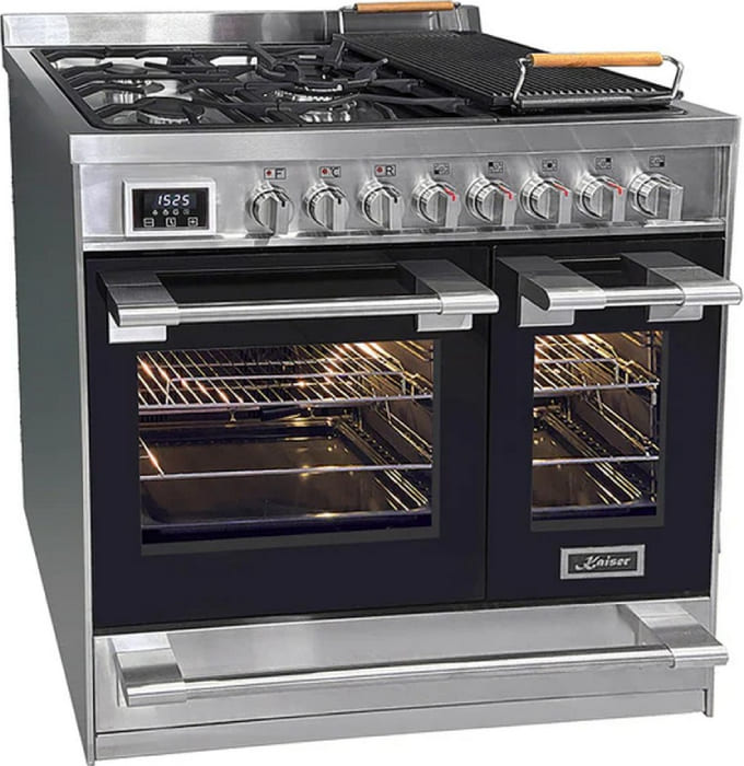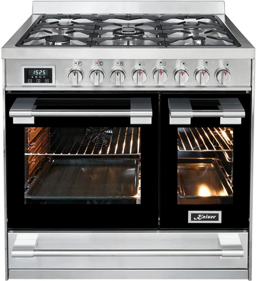 Комбинированная плита Kaiser HGE 93201 R — отличный выбор как для квартиры, так и для частного дома. Цвет корпуса нержавеющая сталь, он гармонично сочетается с мебелью и техникой похожих оттенков, а также может интересно выглядеть на контрасте с ними. На внутренней поверхности двери расположена таблица доступных рецептов — полезная и необычная фишка. Для управления используется удобная и понятная электронно-механическая система. Благодаря ей выбирать режимы приготовления и настраивать параметры температуры очень просто. Основная информация о процессе отображается на дисплее. Переключатели не только выполняют техническую функцию, но и поддерживают общий дизайн; тип элементов: сенсорные + поворотные.