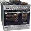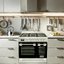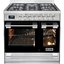 Устройства с тремя духовками также имеют один основной и две дополнительных шкафа разного объема: например, плиты Bertazzoni оснащены большой духовкой объемом 69 литров, средней объемом 54 литра и малой объемом 24 литра. Духовки располагаются в два ряда: две меньшие духовки в одном ряду, большая и ящик для посуды в другом.