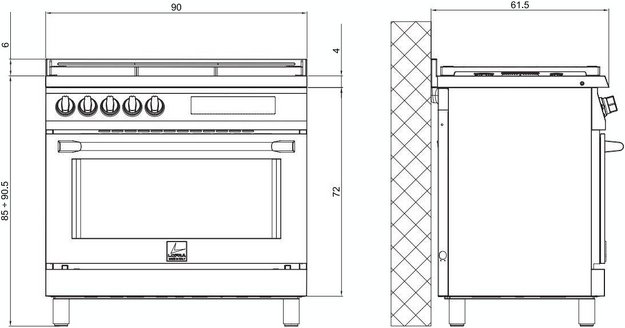 Ширина варочных центров — параметр, которых варьируется в самых больших пределах. Она зависит прежде всего от характеристик модели, в частности, от количества духовок. Производители предлагают модели минимальной шириной 59-60 см с одной духовкой. В магазинах также представлены модели с одной духовкой увеличенной ширины, которая достигает 90 см. Такую же ширину могут иметь варочные центры с двумя духовками, расположенными бок о бок. Модели Lofra с тремя духовками имеют ширину 120 см, а максимальная ширина около 196-200 см отличает модели Restart с дровяной печью и несколькими духовками.