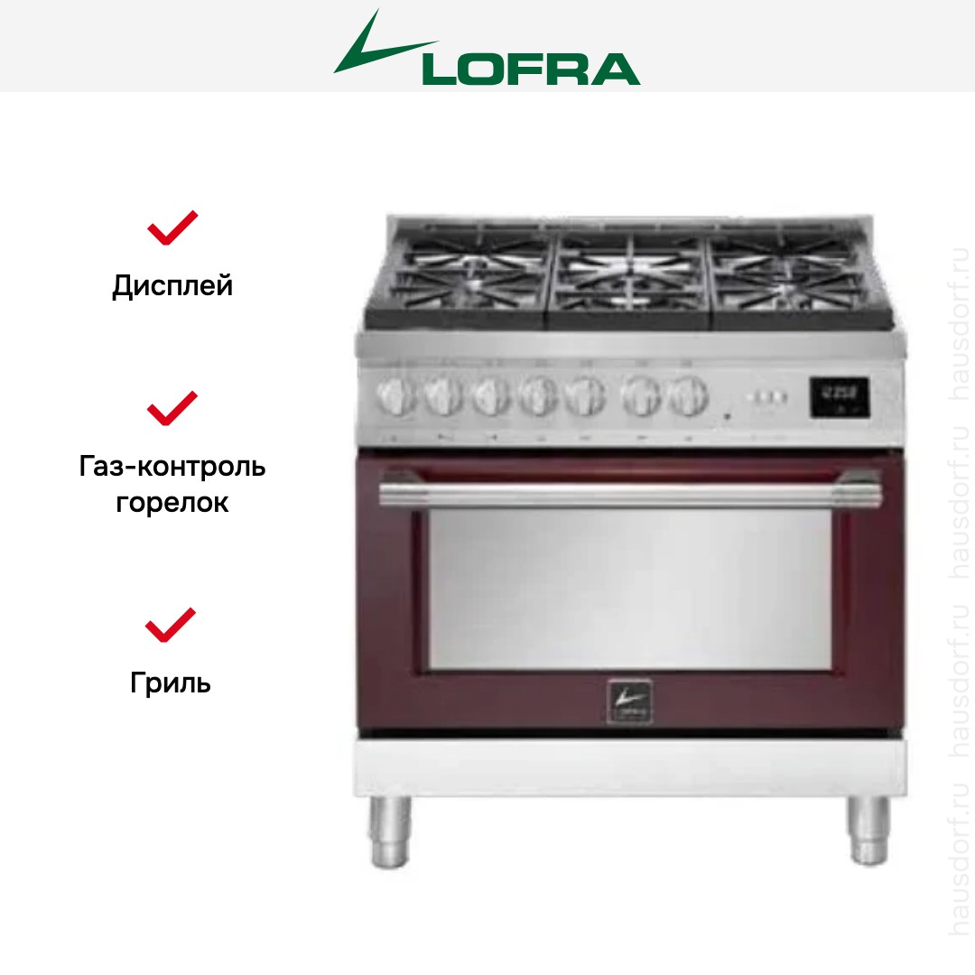 Газовая плита Lofra ARG96WGVGT/AEO — отличный выбор как для квартиры, так и для частного дома. Цвет корпуса бургунди, он гармонично сочетается с мебелью и техникой похожих оттенков, а также может интересно выглядеть на контрасте с ними. Для управления используется удобная и понятная механическая система. Благодаря ей выбирать режимы приготовления и настраивать параметры температуры очень просто. Основная информация о процессе отображается на дисплее. Переключатели не только выполняют техническую функцию, но и поддерживают общий дизайн; тип элементов: поворотные + кнопки.