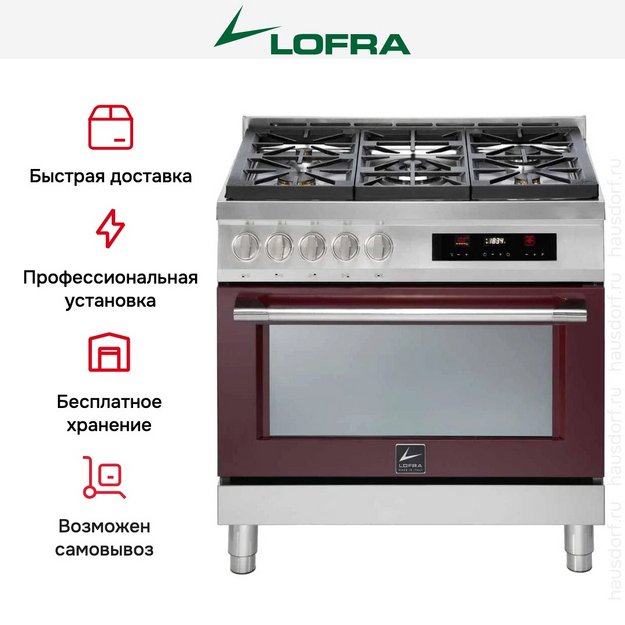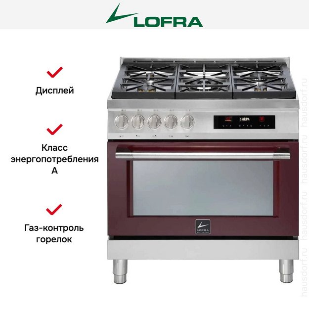 Комбинированная плита Lofra ARG96WMFT/AEO — отличный выбор как для квартиры, так и для частного дома. Цвет корпуса бордо, он гармонично сочетается с мебелью и техникой похожих оттенков, а также может интересно выглядеть на контрасте с ними. Для управления используется удобная и понятная электронная система. Благодаря ей выбирать режимы приготовления и настраивать параметры температуры очень просто. Основная информация о процессе отображается на дисплее. Переключатели не только выполняют техническую функцию, но и поддерживают общий дизайн; тип элементов: сенсорные + поворотные.