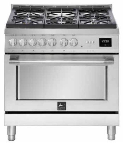 Устройства с тремя духовками также имеют один основной и две дополнительных шкафа разного объема: например, плиты Bertazzoni оснащены большой духовкой объемом 69 литров, средней объемом 54 литра и малой объемом 24 литра. Духовки располагаются в два ряда: две меньшие духовки в одном ряду, большая и ящик для посуды в другом.