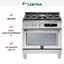 Устройства с тремя духовками также имеют один основной и две дополнительных шкафа разного объема: например, плиты Bertazzoni оснащены большой духовкой объемом 69 литров, средней объемом 54 литра и малой объемом 24 литра. Духовки располагаются в два ряда: две меньшие духовки в одном ряду, большая и ящик для посуды в другом.