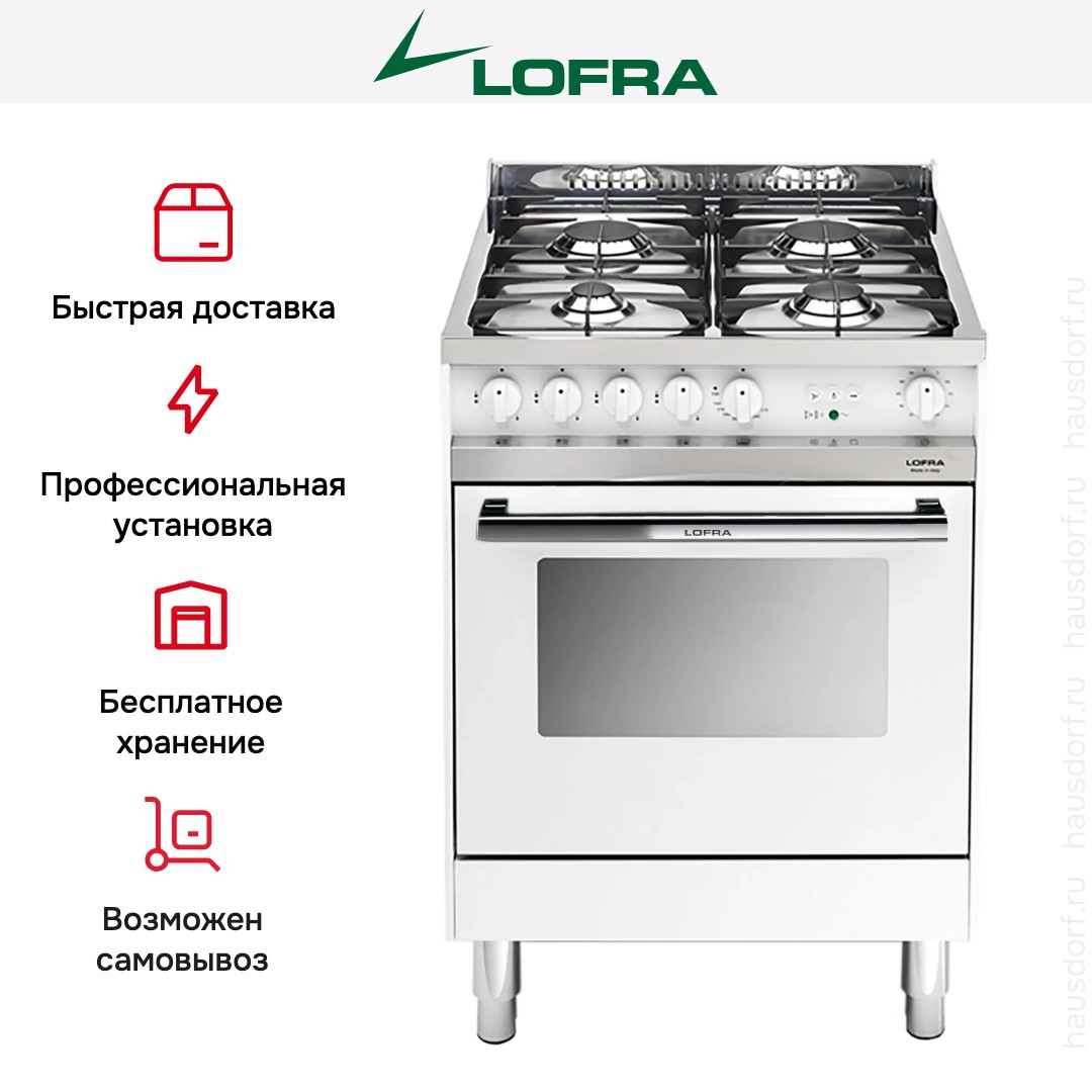 Газовая плита Lofra MB66GV — отличный выбор как для квартиры, так и для частного дома. Цвет корпуса белый жемчуг, он гармонично сочетается с мебелью и техникой похожих оттенков, а также может интересно выглядеть на контрасте с ними. Для управления используется удобная и понятная механическая система. Благодаря ей выбирать режимы приготовления и настраивать параметры температуры очень просто. Переключатели не только выполняют техническую функцию, но и поддерживают общий дизайн; тип элементов: поворотные.
