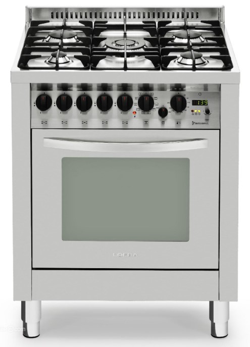 Устройства с тремя духовками также имеют один основной и две дополнительных шкафа разного объема: например, плиты Bertazzoni оснащены большой духовкой объемом 69 литров, средней объемом 54 литра и малой объемом 24 литра. Духовки располагаются в два ряда: две меньшие духовки в одном ряду, большая и ящик для посуды в другом.