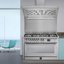 Устройства с тремя духовками также имеют один основной и две дополнительных шкафа разного объема: например, плиты Bertazzoni оснащены большой духовкой объемом 69 литров, средней объемом 54 литра и малой объемом 24 литра. Духовки располагаются в два ряда: две меньшие духовки в одном ряду, большая и ящик для посуды в другом.