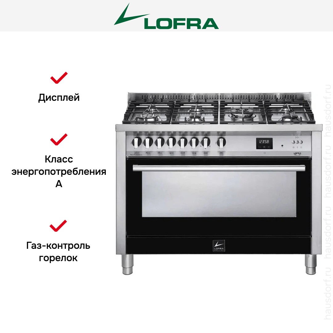 Газовая плита Lofra PNMG126GVGT/2Ci — отличный выбор как для квартиры, так и для частного дома. Цвет корпуса черный, он гармонично сочетается с мебелью и техникой похожих оттенков, а также может интересно выглядеть на контрасте с ними. Для управления используется удобная и понятная электронная система. Благодаря ей выбирать режимы приготовления и настраивать параметры температуры очень просто. Основная информация о процессе отображается на дисплее. Переключатели не только выполняют техническую функцию, но и поддерживают общий дизайн; тип элементов: сенсорные + поворотные.