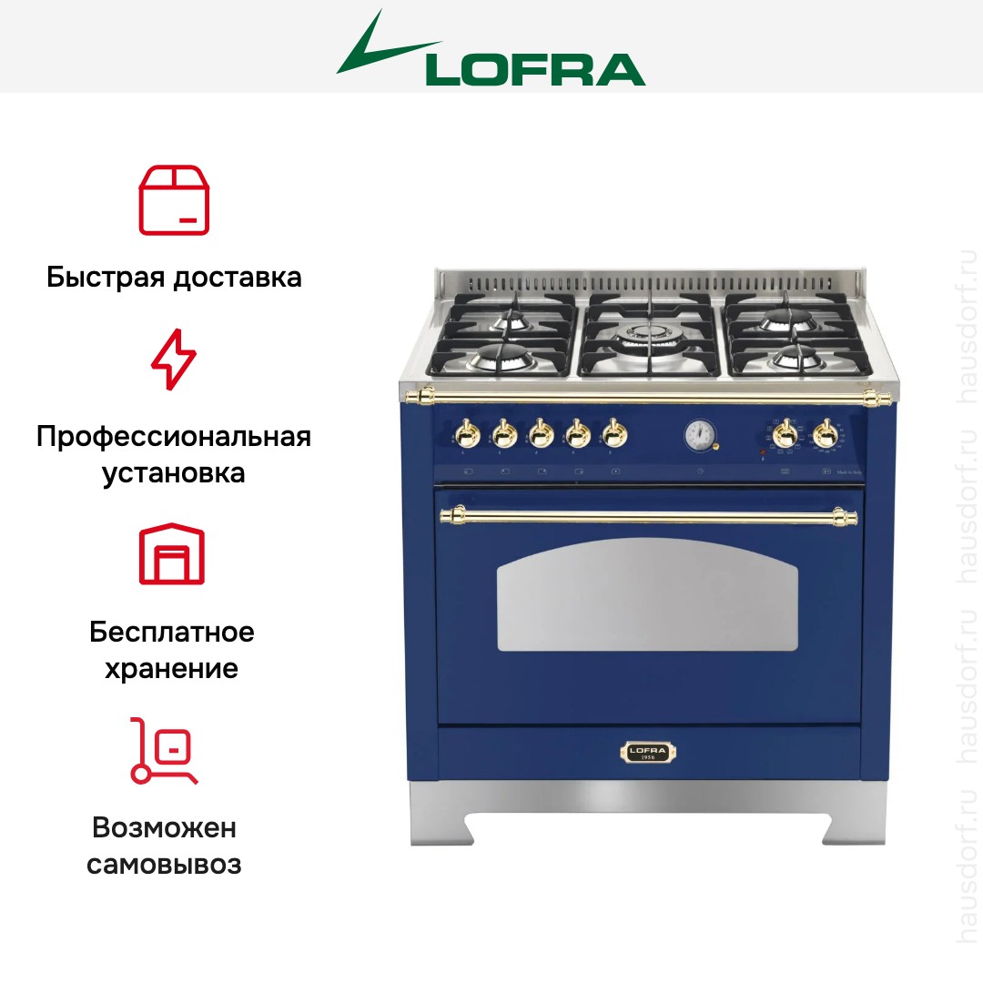 Комбинированная плита Lofra RBLG96MFT/Ci Brass — отличный выбор как для квартиры, так и для частного дома. Цвет корпуса синий, он гармонично сочетается с мебелью и техникой похожих оттенков, а также может интересно выглядеть на контрасте с ними. Для управления используется удобная и понятная механическая система. Благодаря ей выбирать режимы приготовления и настраивать параметры температуры очень просто. Переключатели не только выполняют техническую функцию, но и поддерживают общий дизайн; тип элементов: поворотные.