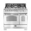 Ширина варочных центров — параметр, которых варьируется в самых больших пределах. Она зависит прежде всего от характеристик модели, в частности, от количества духовок. Производители предлагают модели минимальной шириной 59-60 см с одной духовкой. В магазинах также представлены модели с одной духовкой увеличенной ширины, которая достигает 90 см. Такую же ширину могут иметь варочные центры с двумя духовками, расположенными бок о бок. Модели Lofra с тремя духовками имеют ширину 120 см, а максимальная ширина около 196-200 см отличает модели Restart с дровяной печью и несколькими духовками.