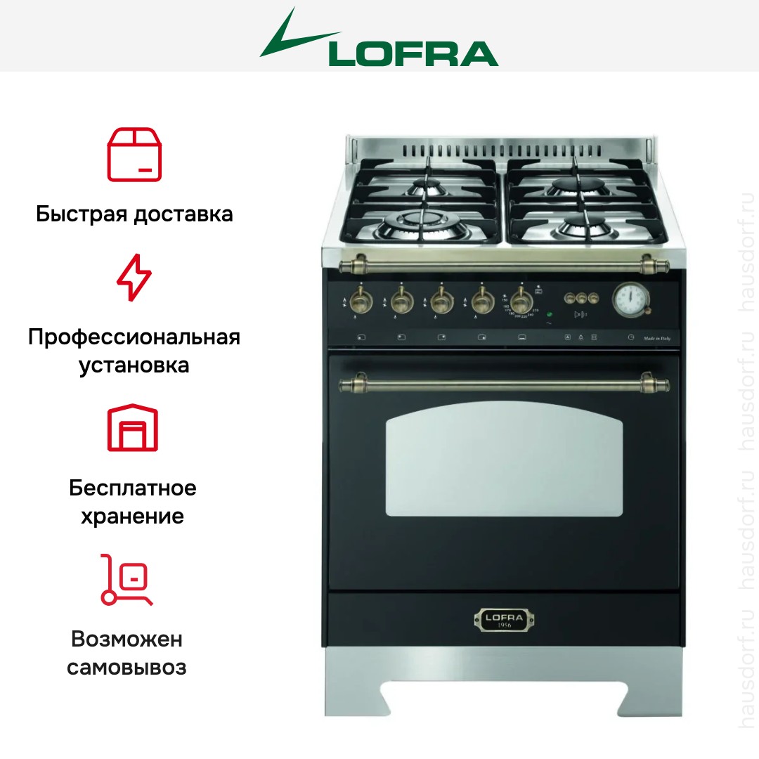Газовая плита Lofra RNM66GVGT/Ci Bronze — отличный выбор как для квартиры, так и для частного дома. Цвет корпуса черный, он гармонично сочетается с мебелью и техникой похожих оттенков, а также может интересно выглядеть на контрасте с ними. Для управления используется удобная и понятная механическая система. Благодаря ей выбирать режимы приготовления и настраивать параметры температуры очень просто. Переключатели не только выполняют техническую функцию, но и поддерживают общий дизайн; тип элементов: поворотные.