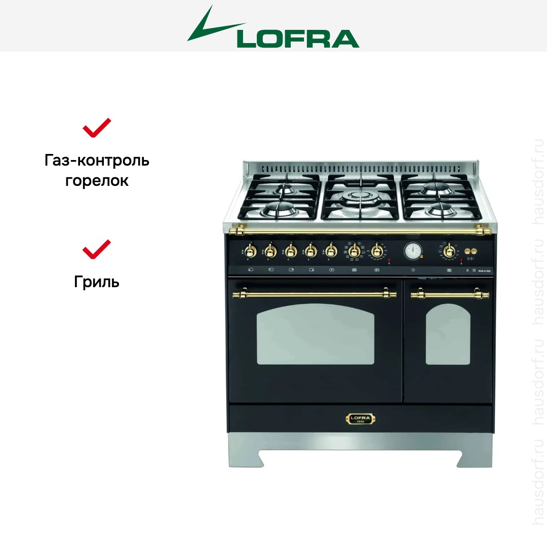Комбинированная плита Lofra RNMD96GVGTE/Ci Brass — отличный выбор как для квартиры, так и для частного дома. Цвет корпуса черный, он гармонично сочетается с мебелью и техникой похожих оттенков, а также может интересно выглядеть на контрасте с ними. Для управления используется удобная и понятная механическая система. Благодаря ей выбирать режимы приготовления и настраивать параметры температуры очень просто. Переключатели не только выполняют техническую функцию, но и поддерживают общий дизайн; тип элементов: поворотные.