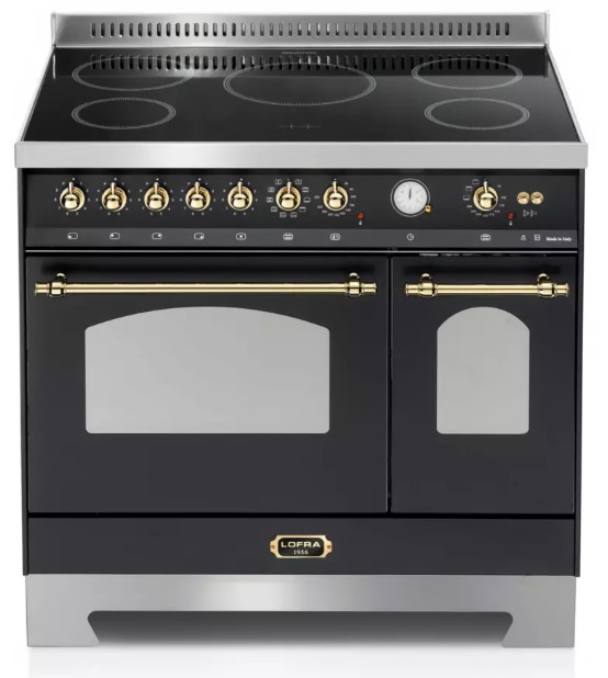 Электрическая плита Lofra RNMD96MFTE/5IF BRASS — отличный выбор как для квартиры, так и для частного дома. Цвет корпуса черный, он гармонично сочетается с мебелью и техникой похожих оттенков, а также может интересно выглядеть на контрасте с ними. Для управления используется удобная и понятная механическая система. Благодаря ей выбирать режимы приготовления и настраивать параметры температуры очень просто. Переключатели не только выполняют техническую функцию, но и поддерживают общий дизайн; тип элементов: поворотные + кнопки.