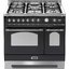 Устройства с тремя духовками также имеют один основной и две дополнительных шкафа разного объема: например, плиты Bertazzoni оснащены большой духовкой объемом 69 литров, средней объемом 54 литра и малой объемом 24 литра. Духовки располагаются в два ряда: две меньшие духовки в одном ряду, большая и ящик для посуды в другом.