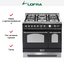 Габариты устройства — от 85 до 90,5 см в высоту, 90 см в ширину и 60 см в глубину — продуманы для гармоничного встраивания в просторные интерьеры. Несмотря на внушительные размеры, техника выглядит элегантно благодаря сбалансированным пропорциям и хромированной отделке, придающей ей благородный, слегка ретро-вдохновлённый шарм. Подключение к газовой магистрали и электросети гарантирует стабильную работу всех систем, включая электронные таймеры, защиту от перегрева и блокировку панели от случайного включения.