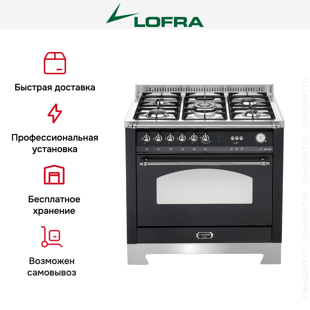 Газовая плита Lofra RNMG96GVGT/Ci Chrome — отличный выбор как для квартиры, так и для частного дома. Цвет корпуса черный, он гармонично сочетается с мебелью и техникой похожих оттенков, а также может интересно выглядеть на контрасте с ними. Для управления используется удобная и понятная механическая система. Благодаря ей выбирать режимы приготовления и настраивать параметры температуры очень просто. Переключатели не только выполняют техническую функцию, но и поддерживают общий дизайн; тип элементов: поворотные.