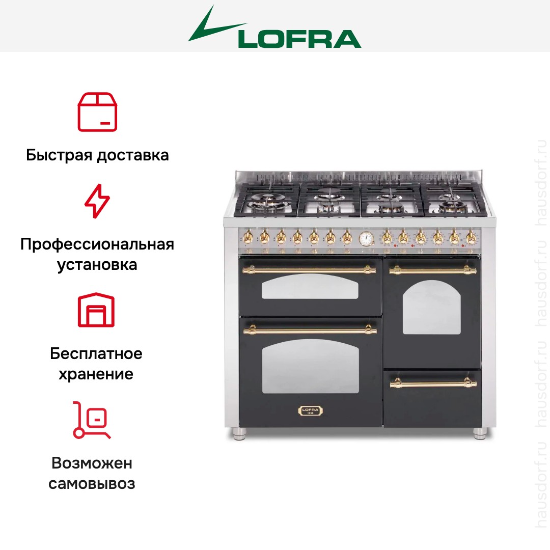 Варочный центр Лофра оборудован несколькими духовками; одну из них можно использовать как основную на постоянной основе, другие как дополнительные. Тип нагрева в камере — электрический. Размещайте противни на разной высоте в зависимости от режима или желаемого результата.