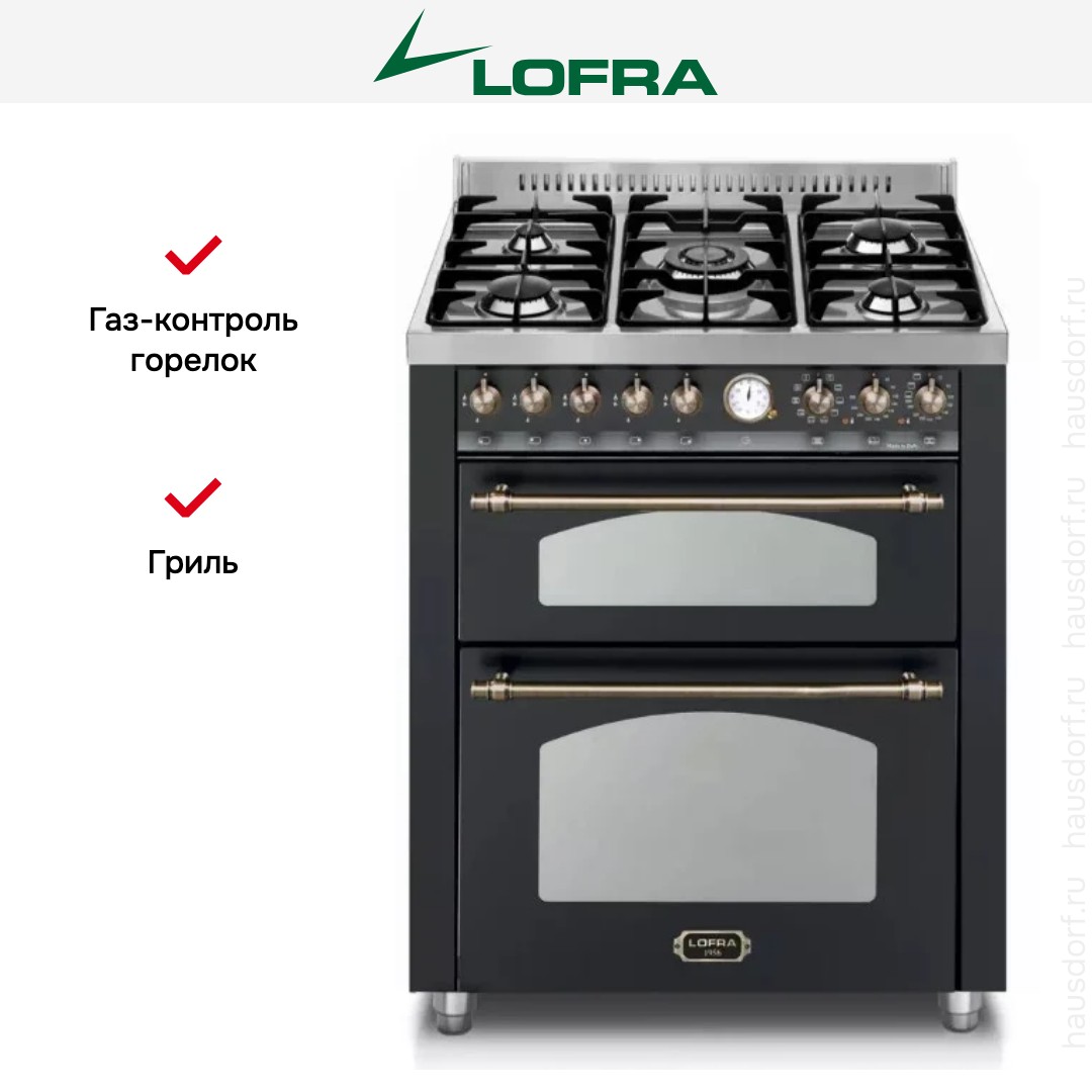 Варочный центр Лофра оборудован несколькими духовками; одну из них можно использовать как основную на постоянной основе, другие как дополнительные. Тип нагрева в камере — электрический. Размещайте противни на разной высоте в зависимости от режима или желаемого результата.