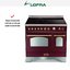 Устройства с тремя духовками также имеют один основной и две дополнительных шкафа разного объема: например, плиты Bertazzoni оснащены большой духовкой объемом 69 литров, средней объемом 54 литра и малой объемом 24 литра. Духовки располагаются в два ряда: две меньшие духовки в одном ряду, большая и ящик для посуды в другом.