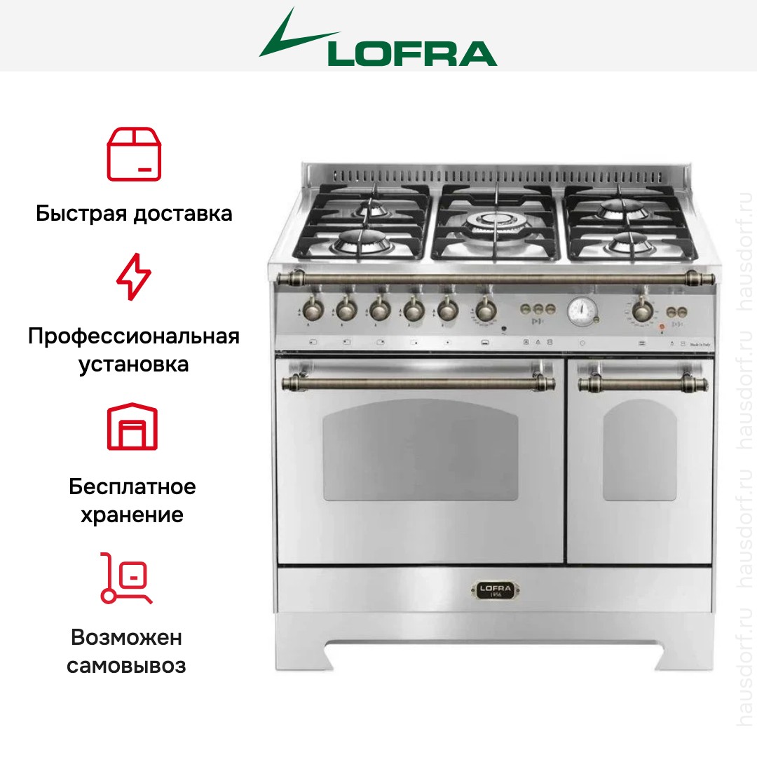 Варочный центр Лофра оборудован несколькими духовками; одну из них можно использовать как основную на постоянной основе, другие как дополнительные. Тип нагрева в камере — гибридный. Размещайте противни на разной высоте в зависимости от режима или желаемого результата.