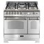 Ширина варочных центров — параметр, которых варьируется в самых больших пределах. Она зависит прежде всего от характеристик модели, в частности, от количества духовок. Производители предлагают модели минимальной шириной 59-60 см с одной духовкой. В магазинах также представлены модели с одной духовкой увеличенной ширины, которая достигает 90 см. Такую же ширину могут иметь варочные центры с двумя духовками, расположенными бок о бок. Модели Lofra с тремя духовками имеют ширину 120 см, а максимальная ширина около 196-200 см отличает модели Restart с дровяной печью и несколькими духовками.