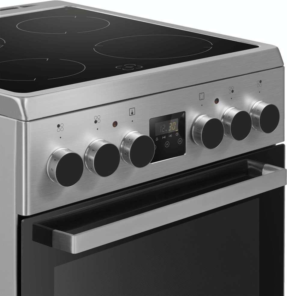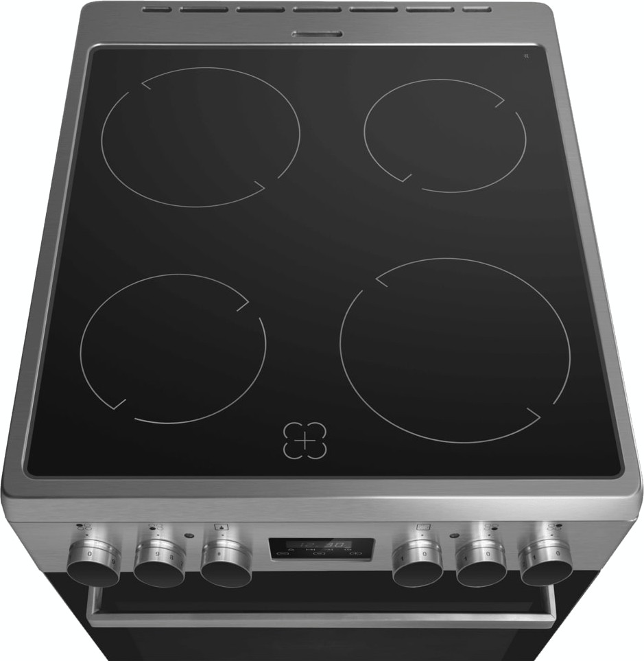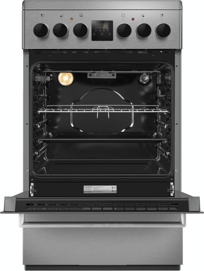 Электрическая плита Maunfeld MEC55CS08D — отличный выбор как для квартиры, так и для частного дома. Цвет корпуса нержавеющая сталь, он гармонично сочетается с мебелью и техникой похожих оттенков, а также может интересно выглядеть на контрасте с ними. На внутренней поверхности двери расположена таблица доступных рецептов — полезная и необычная фишка. Для управления используется удобная и понятная электронная система. Благодаря ей выбирать режимы приготовления и настраивать параметры температуры очень просто. Основная информация о процессе отображается на дисплее. Переключатели не только выполняют техническую функцию, но и поддерживают общий дизайн; тип элементов: сенсорные + поворотные.