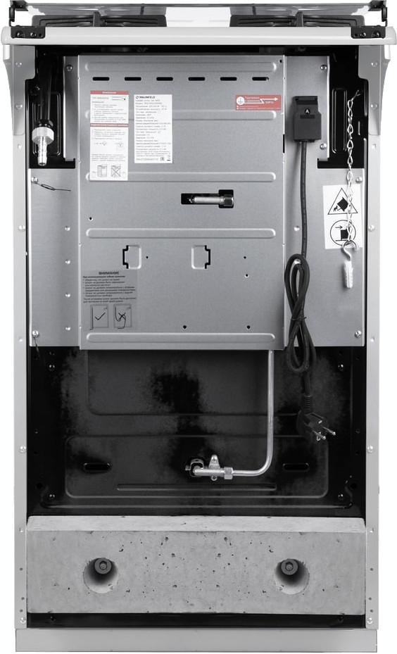 Газ автоматически зажигается без открытого огня. В духовом шкафу установлен пьезоэлемент, который высекает искру.